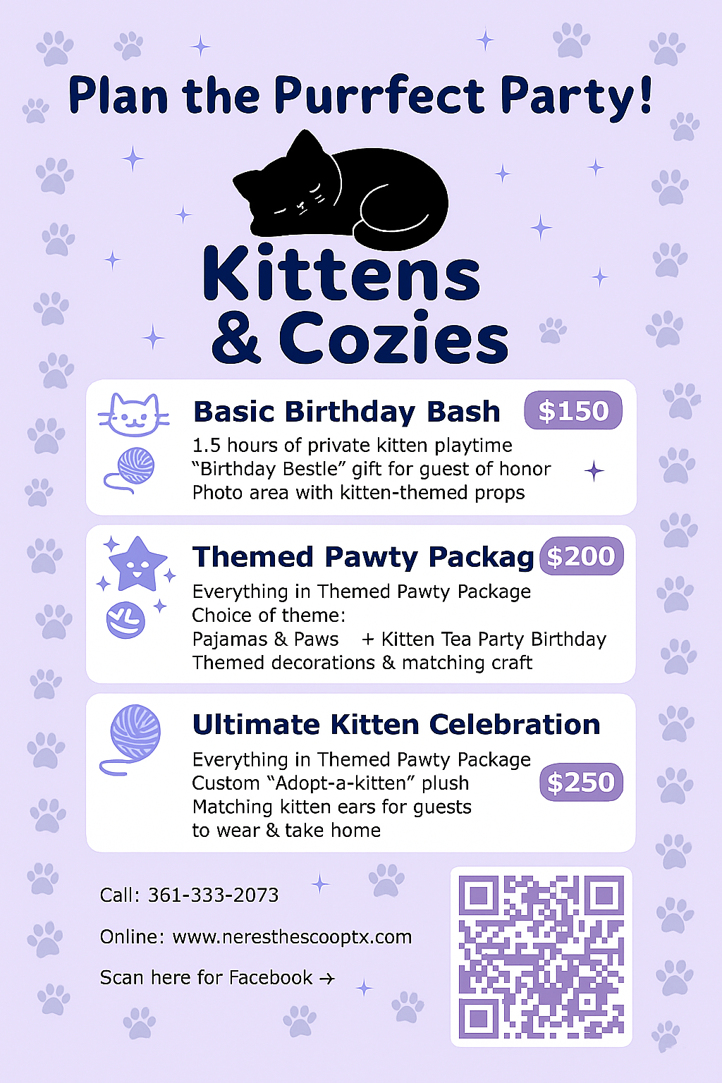 In collaboration with Victoria TNR, we are excited to offer many ways to cozy up with kittens! To schedule an hourly visit, book a party, or become a member, please inquire HERE or give us a call at 361-333-2073!